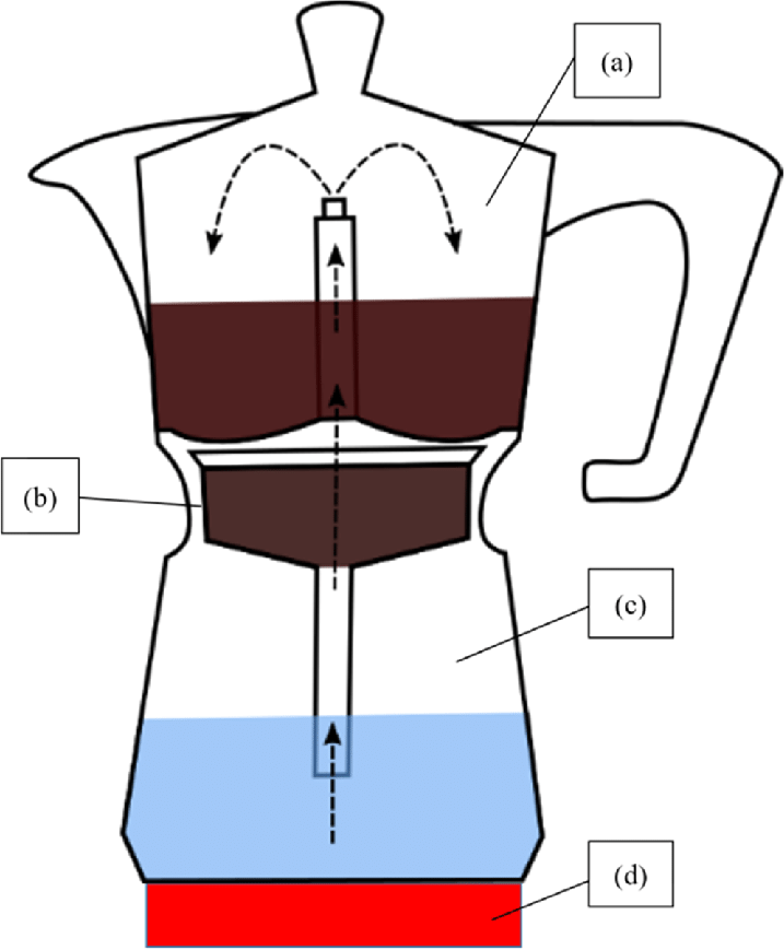 Before the modern high pressure espresso machine, there was still a way to make higher pressure, more caffeinated coffee than drip, it was called the Moka Pot. To use it, you would fill the bottom with water. a cup with coffee, and then screw it together. Placed upon a source of heat, it would force the water through the coffee under steam pressure. When finished, it would make a noise that sounds like the word Moka. This told you it was done.
